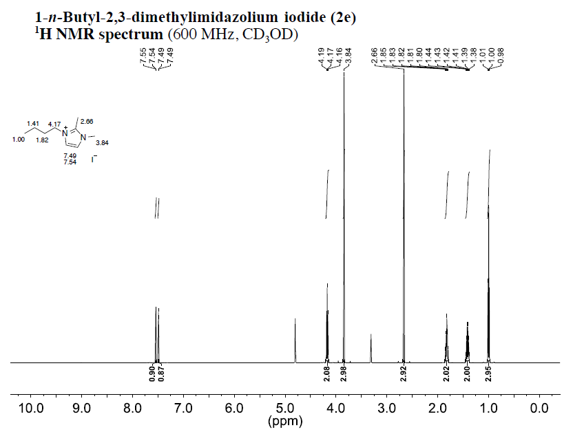 1-丁基-2,3-二甲基咪唑碘盐,BMMImI,108203-70-9,1-butyl-2,3-dimethylimidazolium Iodide,核磁 NMR, H谱, CD3OD